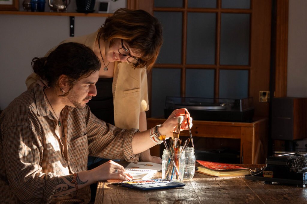 Elle poursuit depuis un diplôme d’études supérieures en création littéraire et navigue le monde à sa façon un peu chaotique, souvent en jetant un coup d’œil furtif par-dessus l’épaule d’un Ludwig absorbé dans les souvenirs en couleurs qu’il a récolté en chemin.