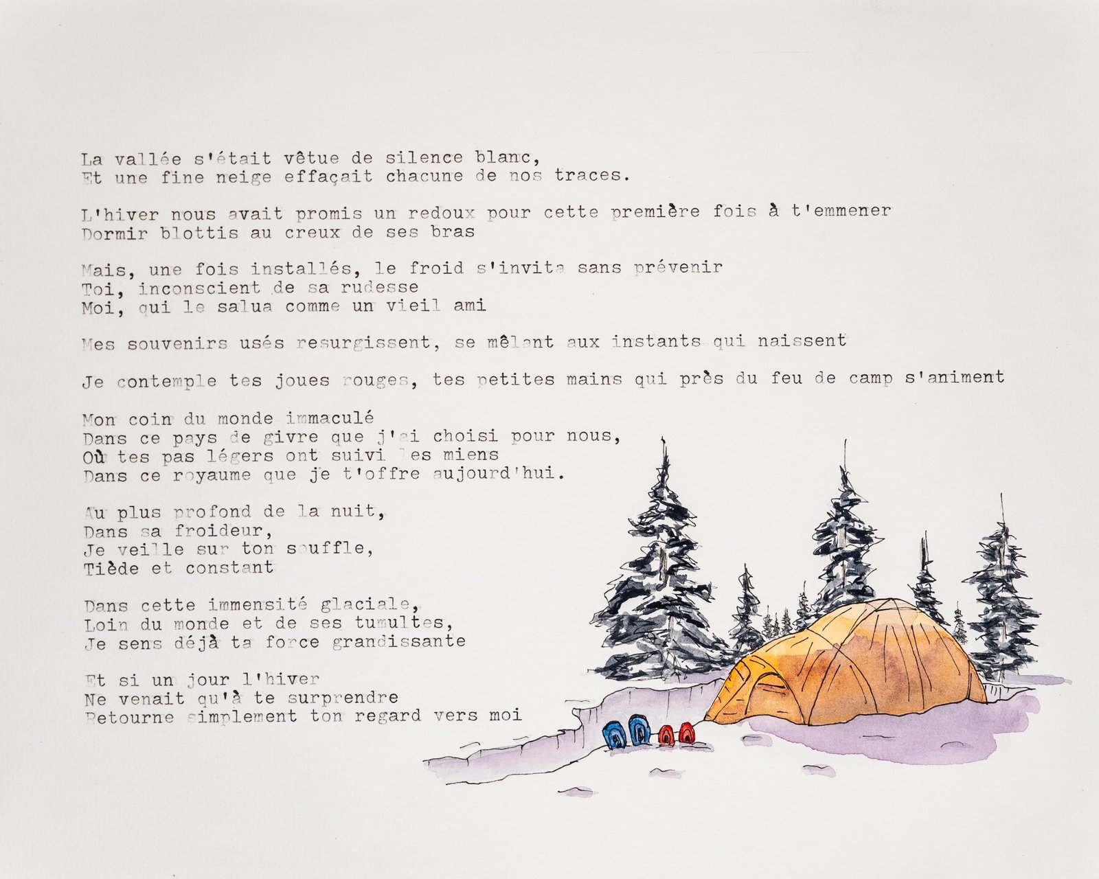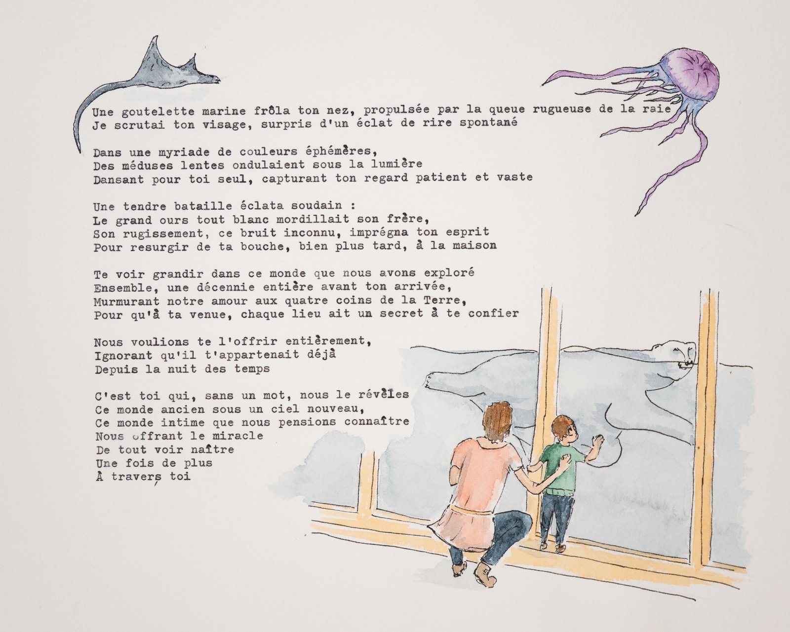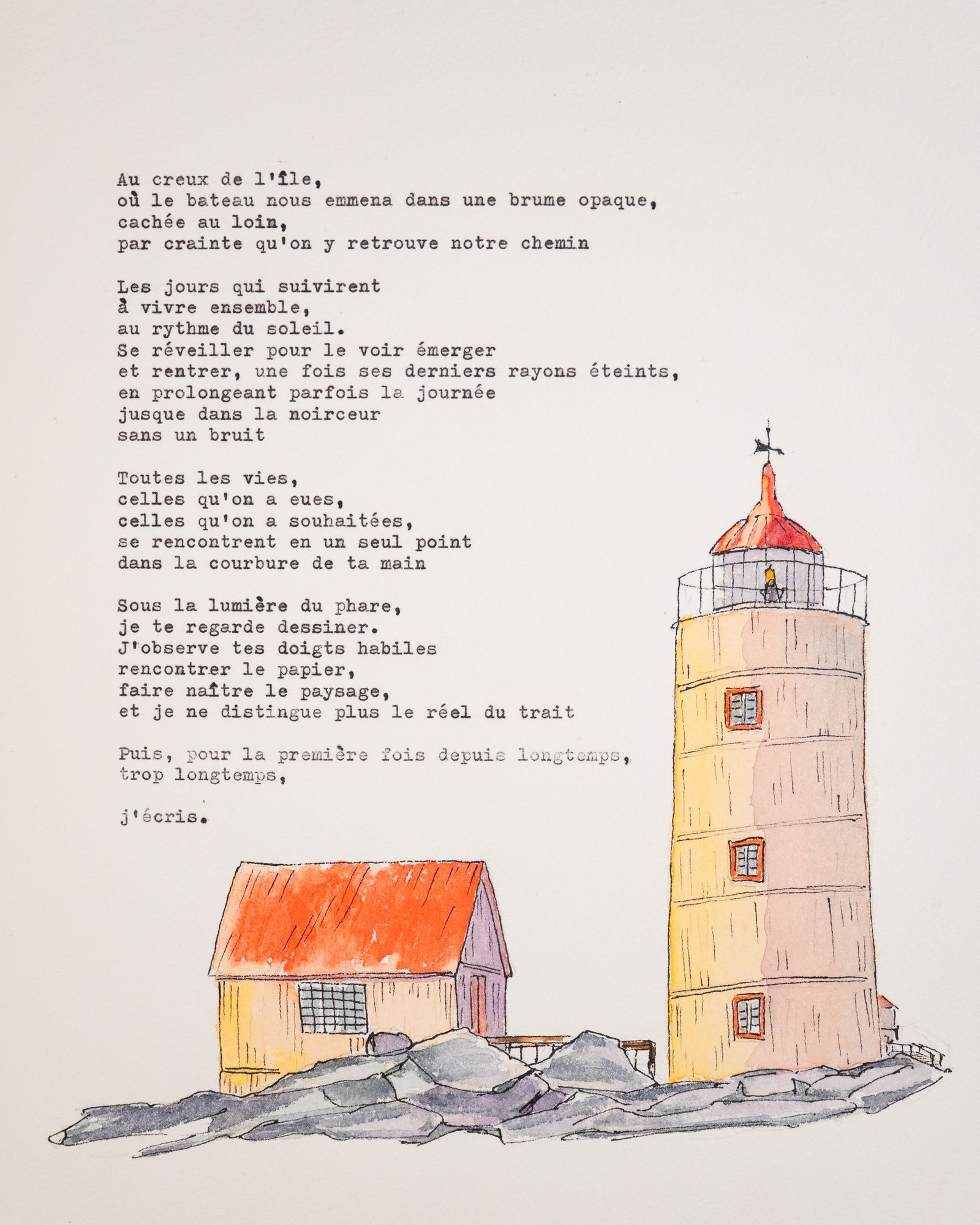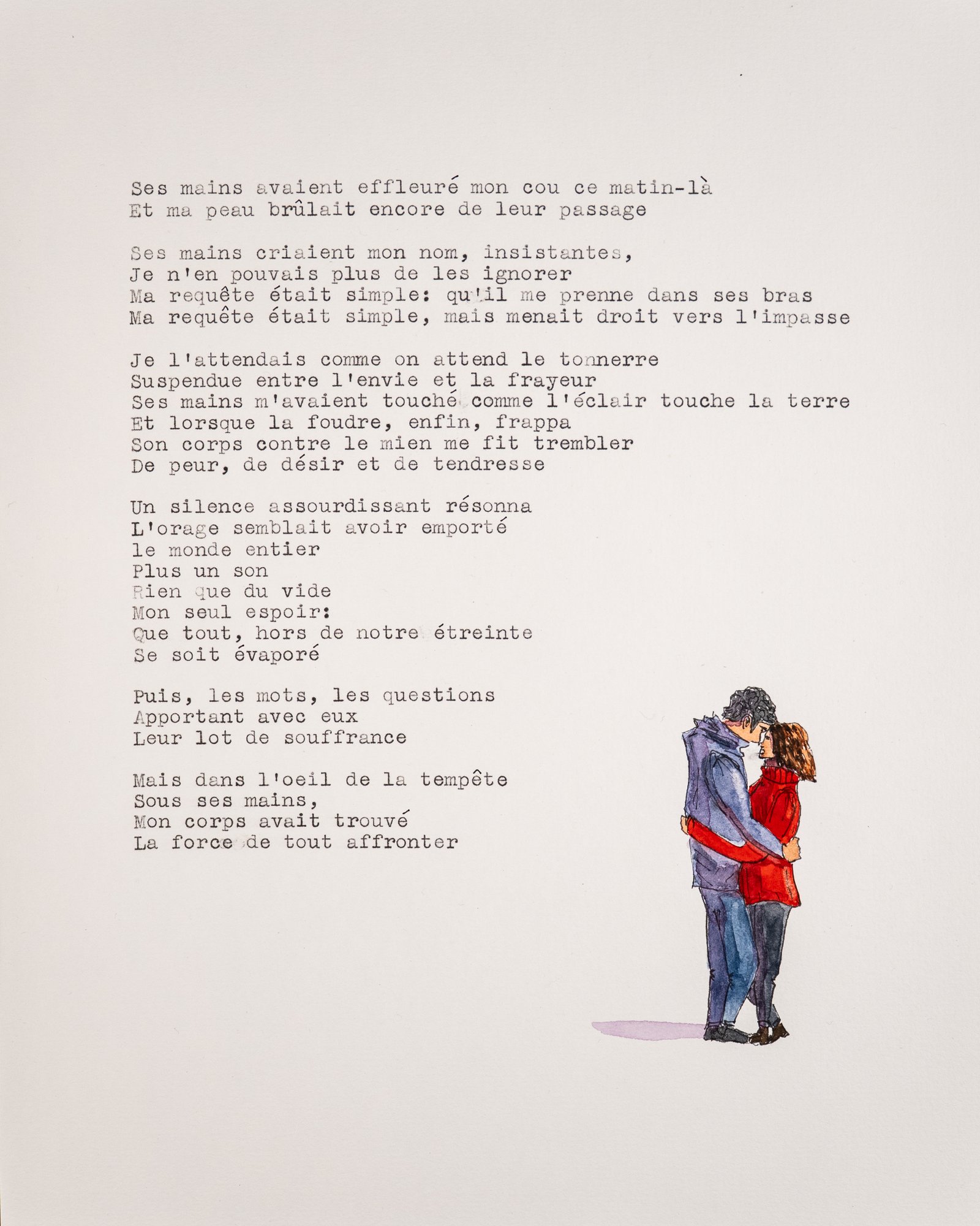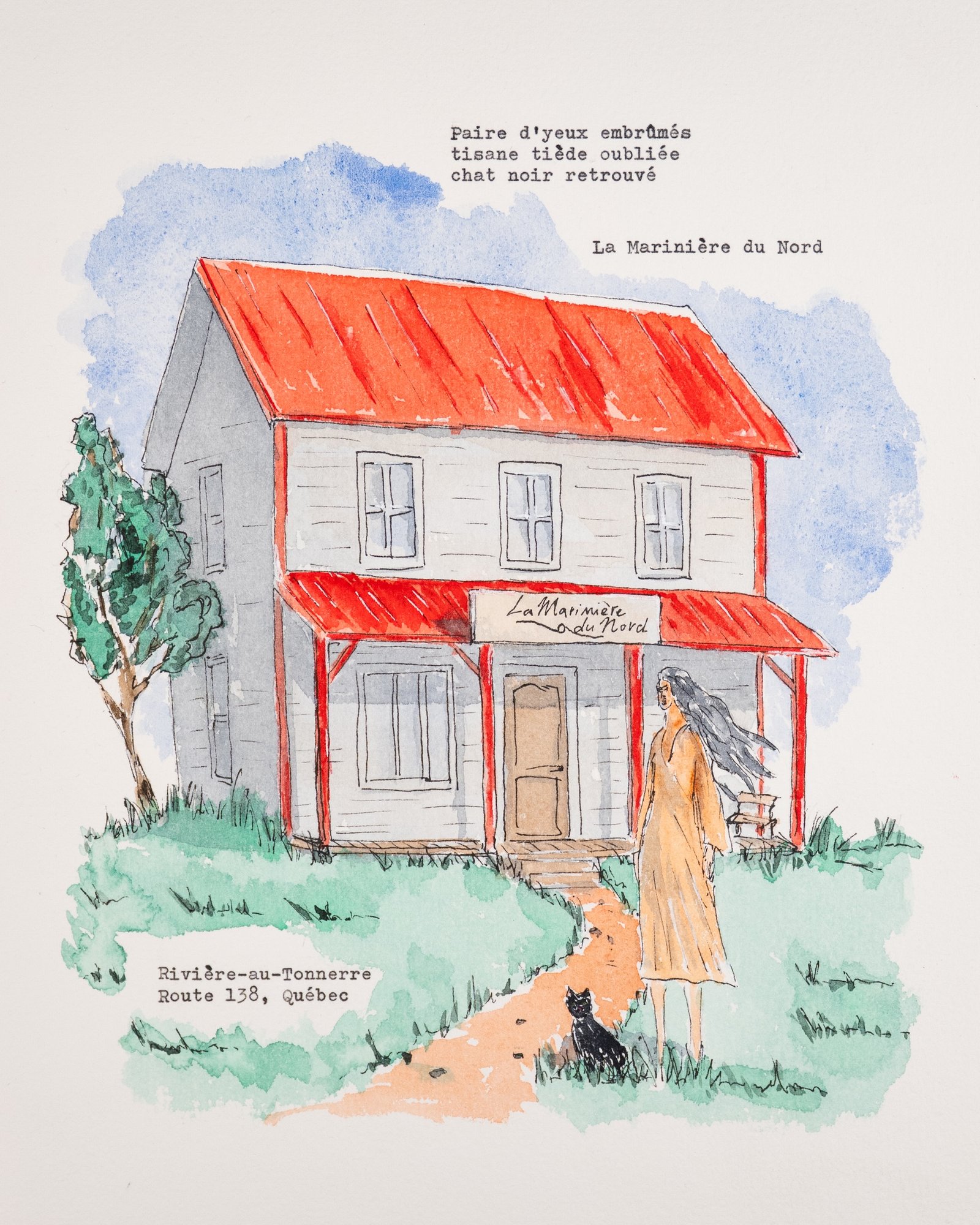 À partir d’une rencontre avec vous, Maude compose un texte poétique tapé à la machine et Ludwig peint une aquarelle. Un tableau sorti tout droit de votre mémoire.