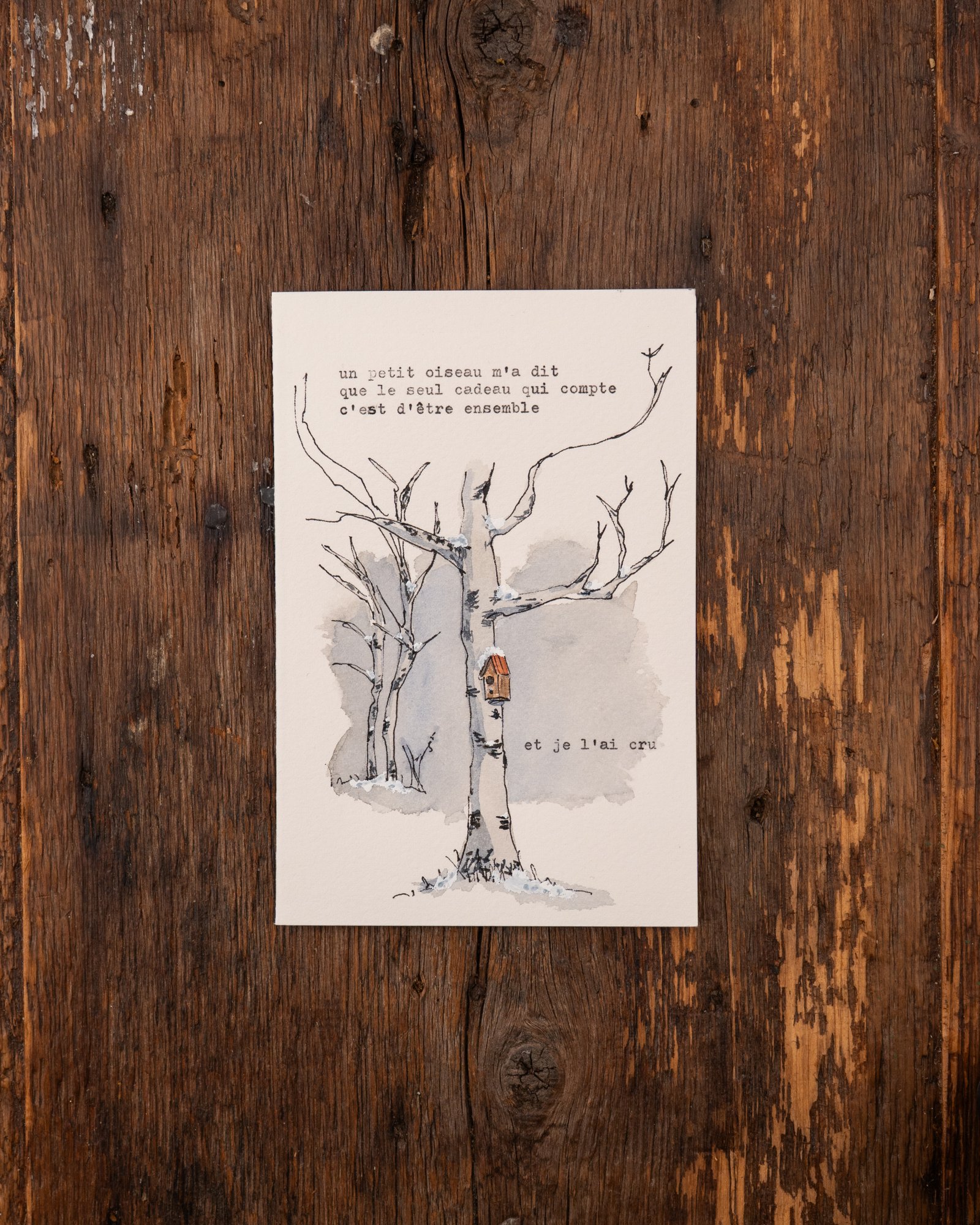 « Être ensemble » se situe à la croisée des chemins entre la carte à offrir et l’œuvre à encadrer.