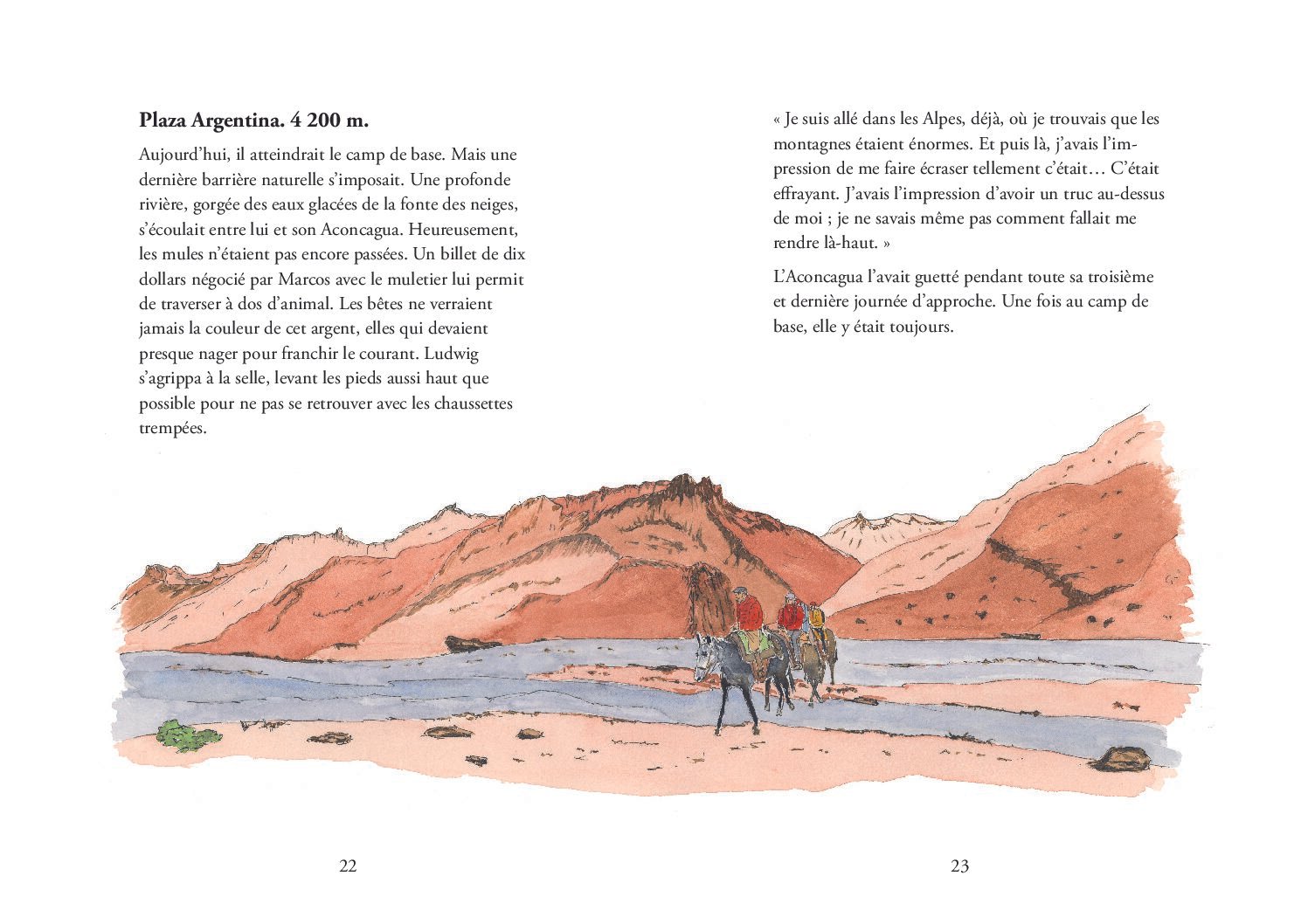 À travers le texte, j’ai senti la montagne. Avec les aquarelles bien plus qu’avec des photographies j’ai imaginé les pentes, l’ascension…