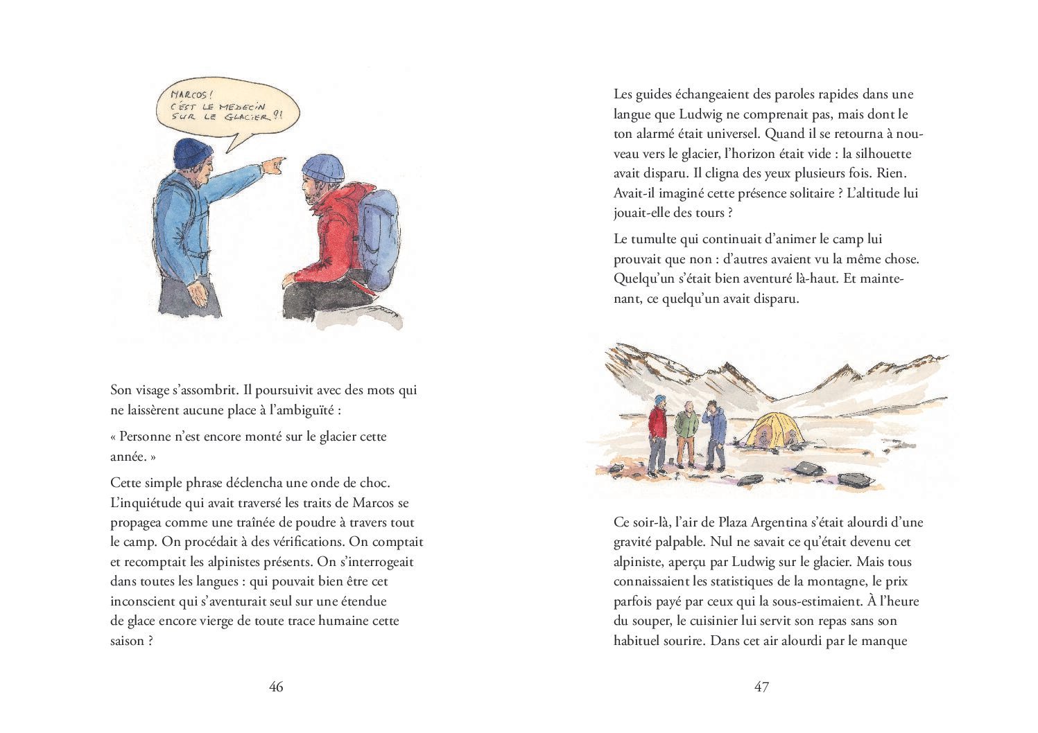 L’écho des hauteurs est un livre illustré / roman graphique qui unit une histoire d’ascension et ses illustrations.